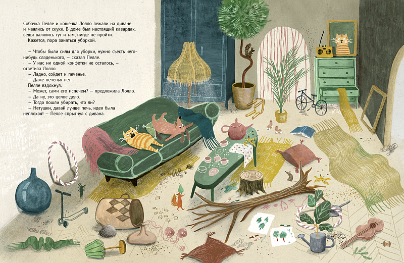 Дома у песика Пелле и кошечки Лолло настоящий кавардак: вещи валяются тут и там, нигде не пройти. Кажется, пора навести порядок. Но чтобы были силы для уборки, нужно съесть чего-нибудь сладенького! В буфете не осталось ни конфетки, ни печенья. Как быть? Друзья отправляются на поиски сладостей и по дороге попадают в разные переделки.