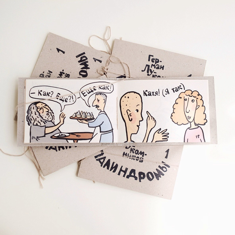 Двадцать шесть иллюстраций к палиндромам Германа Лукомникова. Палиндромы – это слова и фразы, которые читаются слева-направо и справа-налево, одинаково в обе стороны. Это девятнадцатая книга текстов Германа и первая книга его палиндромов в издательстве Niavi. Надеемся, что не последняя.