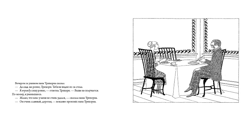 С Трихорном происходило что-то очень странное. Первым делом он заметил, что не может достать до полки у себя в чулане, хотя раньше ему это всегда удавалось: на этой полке он держал свои шоколадные батончики и жевательную резинку. Потом он заметил, что его одежда становится всё больше и больше. Тяжело в это поверить, но, кажется, он… усыхает. Да, все дети растут, но только не Трихорн… Он же всё меньше с каждым днём. Ещё чуть-чуть, и Трихорн совсем исчезнет…