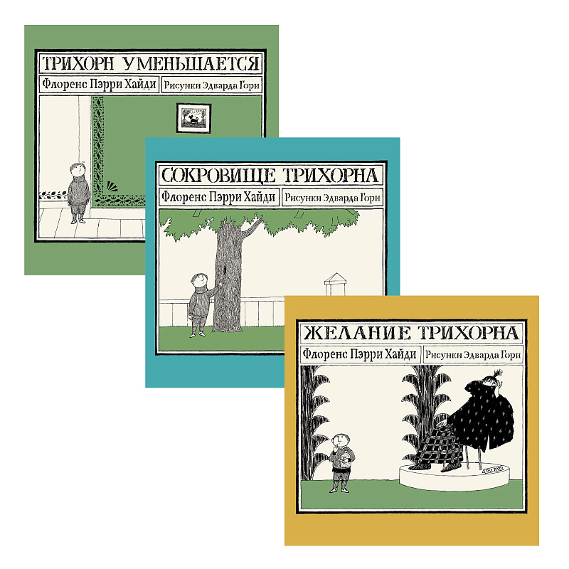 <p> Знакомьтесь, это Трихорн. </p> <p> Так уж сложилось, что Трихорн постоянно попадает в истории – одна лучше другой. </p> <p> Он уменьшается, он находит сокровище, он загадывает желания, которые порой даже сбываются. Казалось бы, не жизнь, а сказка! Но это только на первый взгляд... Присмотритесь внимательнее и увидите: сказка эта слишком странная. В ней нет волшебства и чудес. Один только абсурд! </p> <h2>5 причин купить «Трихорн, комплект из трёх книг»:</h2> <ul> <li> <p> Комплект из трёх книг о Трихорне — странном мальчике, который попадает в абсурдные ситуации; </p> </li> <li> <p> Впервые на русском языке книги с рисунками выдающегося мастера абсурда и макабра — Эдварда Гори; </p> </li> <li> <p> Книги, где нет места волшебству, зато достаточно сюрреалистического безумия; </p> </li> <li> <p> Абсурдные и трагикомичные истории, где правда уживается с вымыслом, а взрослые не уживаются с детьми; </p> </li> <li> <p> Иллюстрации великого Эдварда Гори, художника, чьё искусство вдохновляло Тима Бёртона, Лемони Сникета и Терри Гиллиама. </p> </li> </ul>