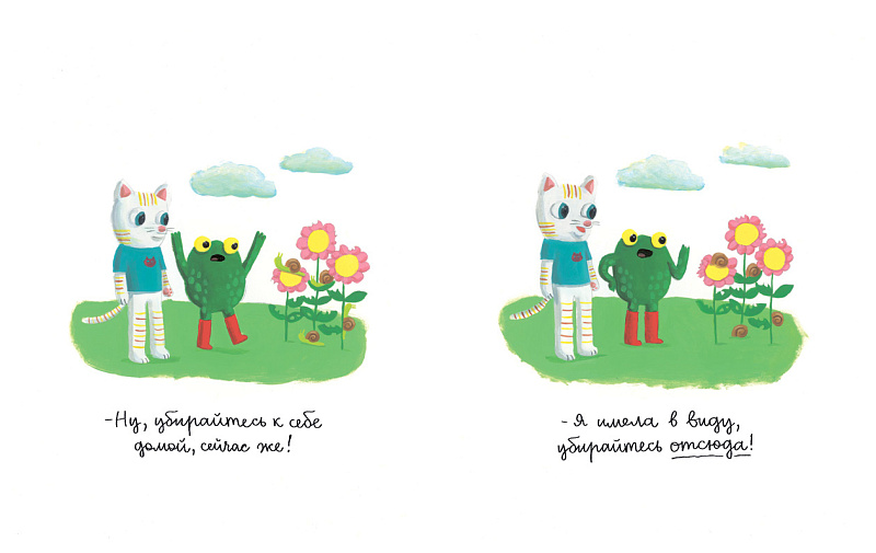 Дружбе девочки Анны, лягушки Фроги, червя Кристофа, кота Рене и пса Бубу можно только позавидовать: днями напролёт они дурачатся, поддразнивают друг друга, изобретают новые игры, спорят, порой ссорятся, но всегда мирятся и продолжают веселиться от души. На страницах книги вас ждут знакомство с йети, съёмки романтического фильма с ковбоями и пришельцами, поездка на поезде-призраке, игра в скрэббл с соседом-вампиром, путешествие в Париж и многие другие уморительные и чуточку абсурдные приключения, которые оценят и дети, и взрослые.