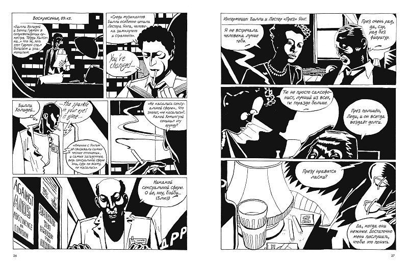 Жизнь джазовой певицы Билли Холидей была под стать её песням — от Lover Man до Strange Fruit — и даже хуже. Её талант взращивался на насилии и эксплуатации со стороны мужчин, а также на алкоголе, наркотиках и дискриминации. Эта биография объединяет яркие строки песен и моменты жизни Билли с высококонтрастными чёрно-белыми панелями Муньоса, погружая читателя в угнетающую реальность.