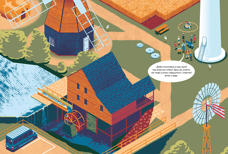 Книга расскажет про разные виды мельниц, когда они появились, какие энергии они преобразуют в движение или в другие энергии, и какое сырье могут обрабатывать;