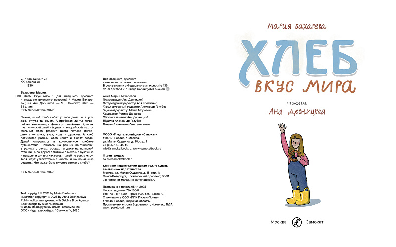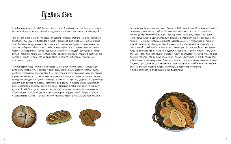 <p style="text-align: center;"> <img width="1024" alt="ХЛЕБ_block_PR_развороты6.jpg" src="/upload/medialibrary/880/ywclimdzitvbl8exkugucgiyai3nekz2.jpg" height="640" title="ХЛЕБ_block_PR_развороты6.jpg"> </p> <p> Скажи, какой хлеб любят у тебя дома, и я угадаю, откуда ты родом. </p> <p> А пробовал ли ты когда-нибудь итальянскую фокаччу, индийскую булочку пав, японский хлеб сёкупан и маорийский картофельный хлеб рэвену? Всего четыре ингредиента — мука, вода, соль и дрожжи. А хлеб получается разный. </p> <p> Хлеб ценят и любят везде. Давай отправимся в кругосветное хлебное путешествие. Побываем на разных континентах, в разных странах, городах и даже на полярной станции. А по дороге заглянем в местные булочные и пекарни и узнаем, как готовят хлеб по всему миру. </p> <p> Тебя ждут увлекательные квесты и национальные рецепты. Что может быть вкуснее свежего хлеба? </p> <h2>5 причин купить книгу «Хлеб. Вкус мира»</h2> <ul> <li> <p> Погружение в традиции разных народов через национальные рецепты; </p> </li> <li> <p> Вкусное кругосветное путешествие и квесты для всей семьи; </p> </li> <li> <p> История хлеба на всех континентах; </p> </li> <li> <p> Новинка от одного из самых известных российских иллюстраторов — Ани Десницкой, автора <a href="https://samtambooks.com/book/istoriya-staroy-kvartiry/">«Истории старой квартиры»</a>, <a href="https://samtambooks.com/book/transsib-poezd-otpravlyaetsya/">«Транссиба»</a> и других хитов; </p> </li> <li> <p> Международный проект: книга одновременно появится в нескольких странах. </p> </li> </ul> <p> <img width="1024" alt="ХЛЕБ_block_PR_развороты9.jpg" src="/upload/medialibrary/76b/qspt434c8wgpel5eniyhfv78bvahdj60.jpg" height="640" title="ХЛЕБ_block_PR_развороты9.jpg"> </p>
