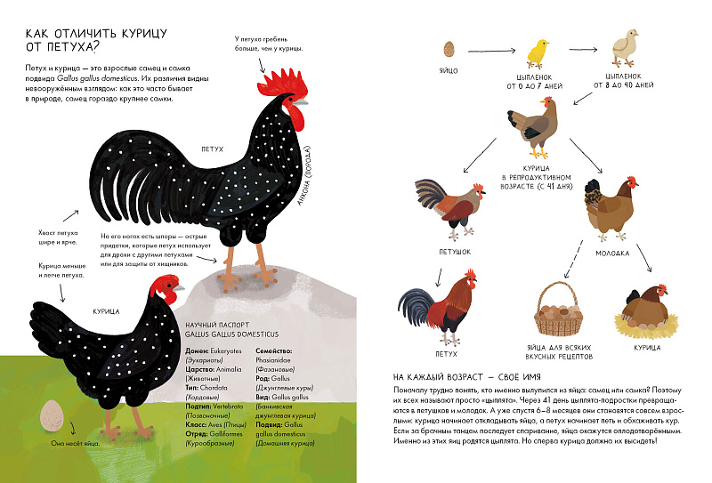 Эта книга — праздник многообразия! У куриц разные характеры и поведение, внутри только одной породы может быть десяток окрасов, а уж сколько пород во всем мире – около 300!