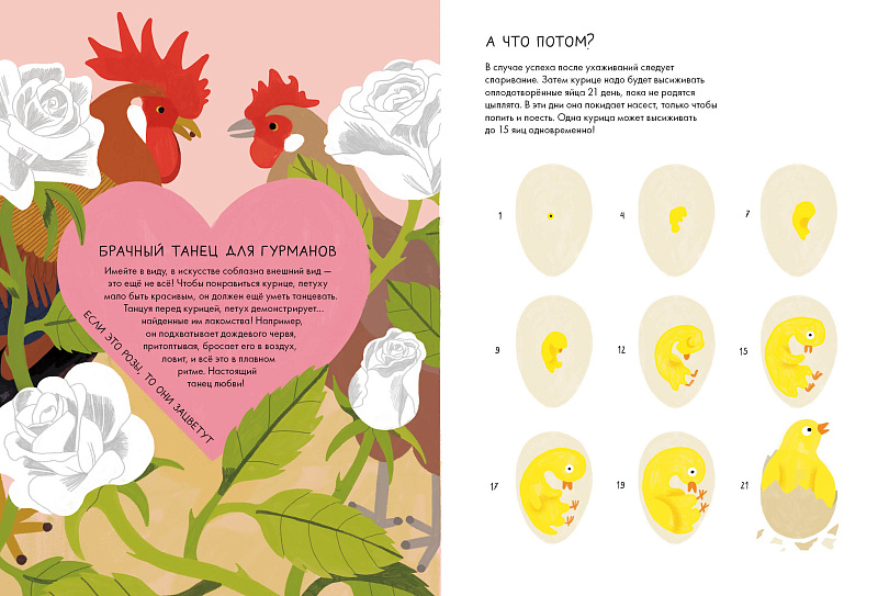 «Приготовьтесь узнать о невероятном мире кур в самых подробных деталях. Незамысловатые иллюстрации не только украшают книгу, но и поясняют текст. Книга наполнена удивительными научными фактами, вы узнаете ответы на все вопросы: когда и почему курицы линяют, зачем нужен гребень, откуда берутся яйца и многое-многое другое. Эта познавательная книга написана для всех любителей куриц, а также для тех, в ком любовь к пернатым только начала проклевываться.»