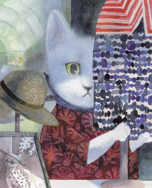 Текст здесь лаконичен, и всю палитру чувств, буйство эмоций — и много красоты — несут иллюстрации. Утренний туман и утренние надежды, грустный стук дождя за окном и неверный свет вечерних фонарей… а вот и сам господин Нарцисс: отражается в витрине в полный рост — от безупречной шляпы до любовно начищенных туфель, идеально отглаженного костюма, и — ах! — с изящной тростью в руках.