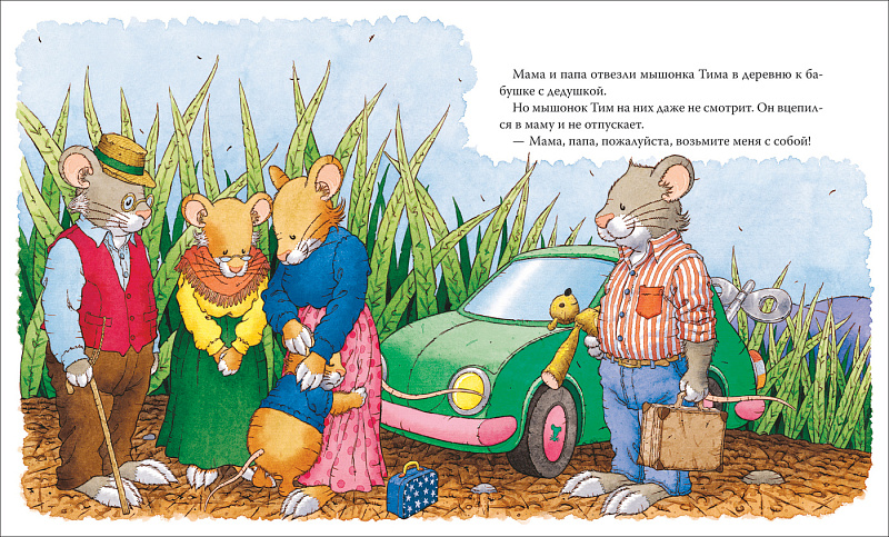 Мама и папа уезжают на несколько дней. Мышонок Тим должен пожить у бабушки с дедушкой, но оставаться у них ему совсем не хочется. Ему кажется, что там не будет ничего интересного. Но, конечно, это не так, и бабушка с дедушкой непременно придумают, чем занять внука! Чудесные иллюстрации итальянского художника Марко Кампанеллы покорят сердца и малышей, и взрослых.
