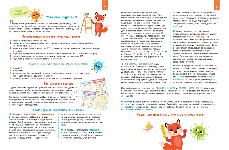 В этом пособии собраны увлекательные задания для детей 6–8 лет. С их помощью на наглядном материале и в игровой форме ребенок познакомится с числами до 100 (и даже больше), а также с алгоритмами устных вычислений в пределах 100.