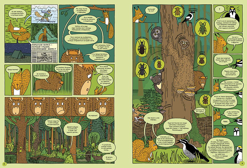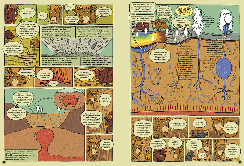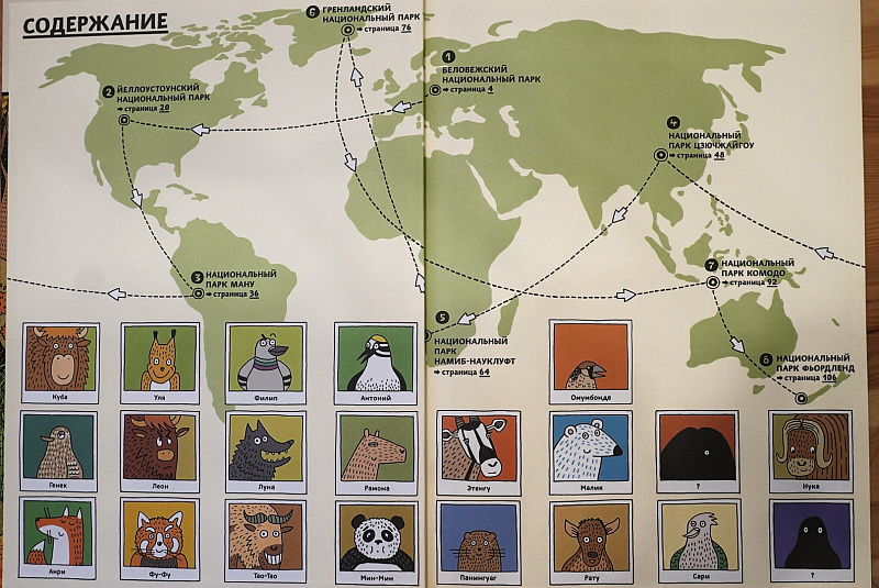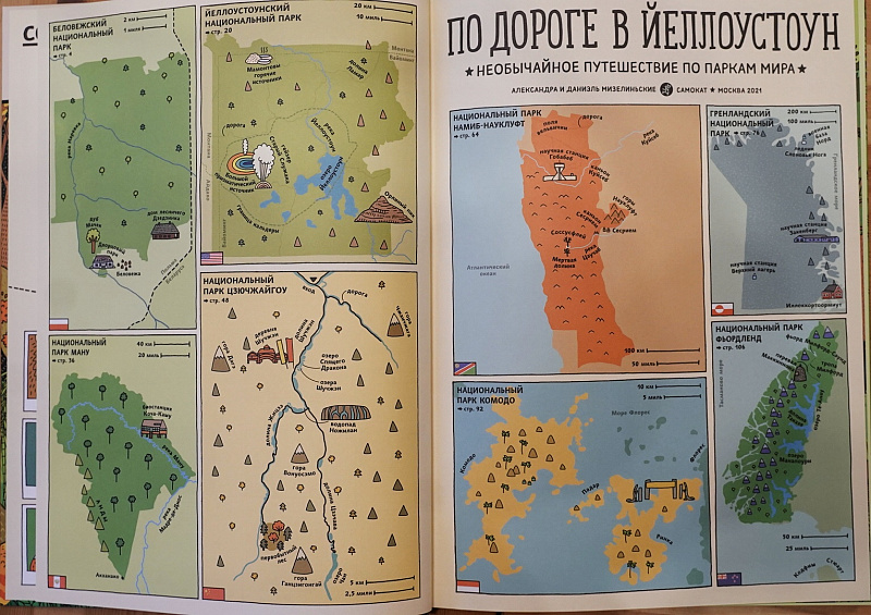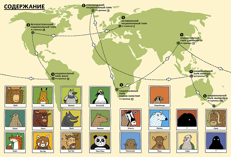 Придумывая книгу «По дороге в Йеллоустоун. Необычайное путешествие по паркам мира», мы сосредоточились на природе – животные, растения и места обитания, в которых они живут. Мы хотели показать, как конкретные среды обитания формируют жизнь, которая в них процветает. И поскольку вмешательство человека в природу неизбежно, то хотели продемонстрировать, как возможно сохранить и преобразовать природные ресурсы. Чтобы раскрыть первую тему, мы выбрали национальные парки, потому что концепция их создания – это сохранение природы. Чтобы раскрыть вторую тему, мы выбрали несколько историй: от чрезмерной охоты на американских бизонов до полного изменения флоры и фауны Новой Зеландии.
