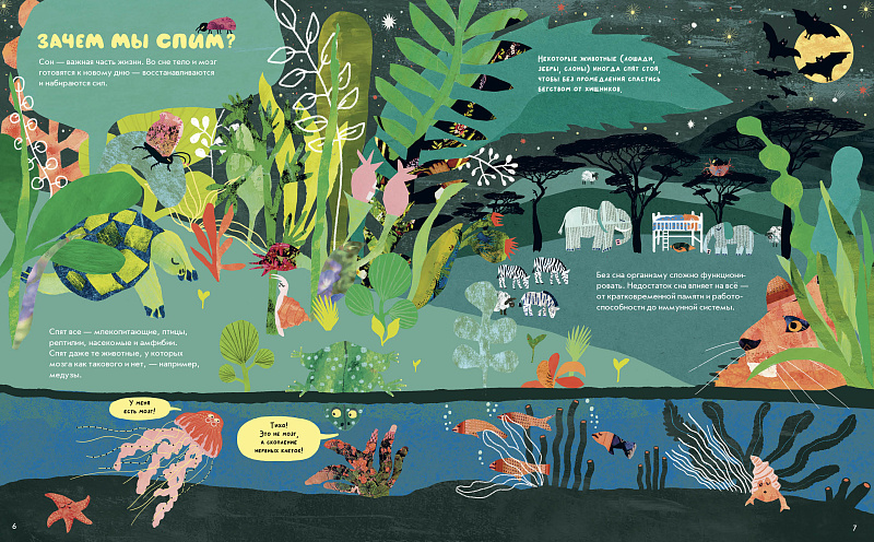 Книга работает как образовательный инструмент: она объясняет принцип выработки мелатонина, работу циркадных ритмов, роль гипоталамуса и природу лунатизма без занудства, но с научной точностью. «Почему мы спим?» — идеальный пример того, как должен выглядеть современный детский нон-фикшен. Кэти Эванс не упрощает материал, а делает его доступным через ясные метафоры и четкую структуру. Ценности добавляют историко-культурные экскурсы: как спали в древности? Что такое летаргический сон? Почему сновидениям издревле придавали мистическое значение?