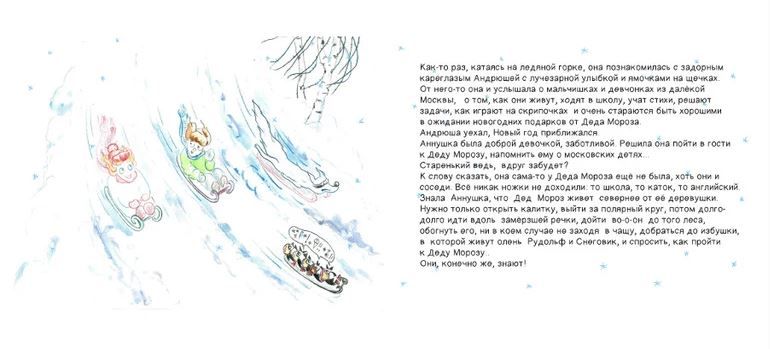 Смелая Аннушка надевает лыжи и отправляется в путешествие — до избушки, до Деда Мороза, до далёкой Москвы, где дети ждут подарки на Новый год.