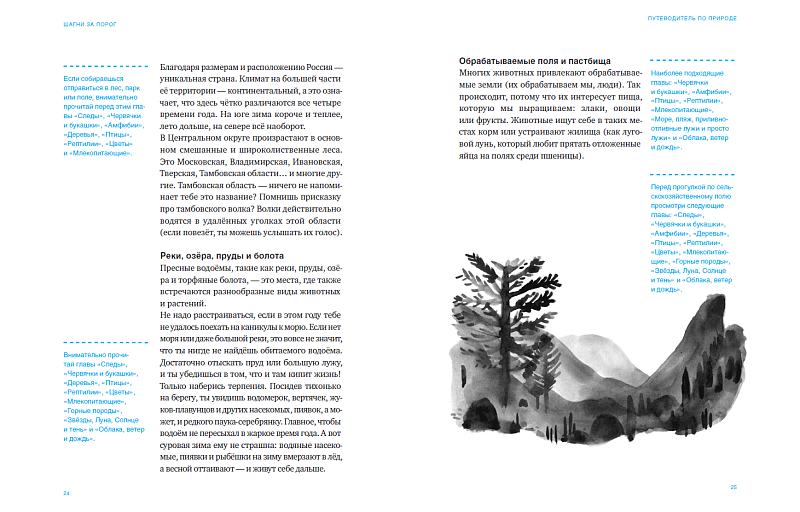 Оказывается, пресловутое школьное природоведение (если правильно его подать) может превратить обычного человека в настоящего следопыта. Без всякой иронии. Много внимания авторы уделяют изучению следов — внезапно в паре штрихов раскрывается масштабное полотно природы, насыщенное информацией о ее обитателях.