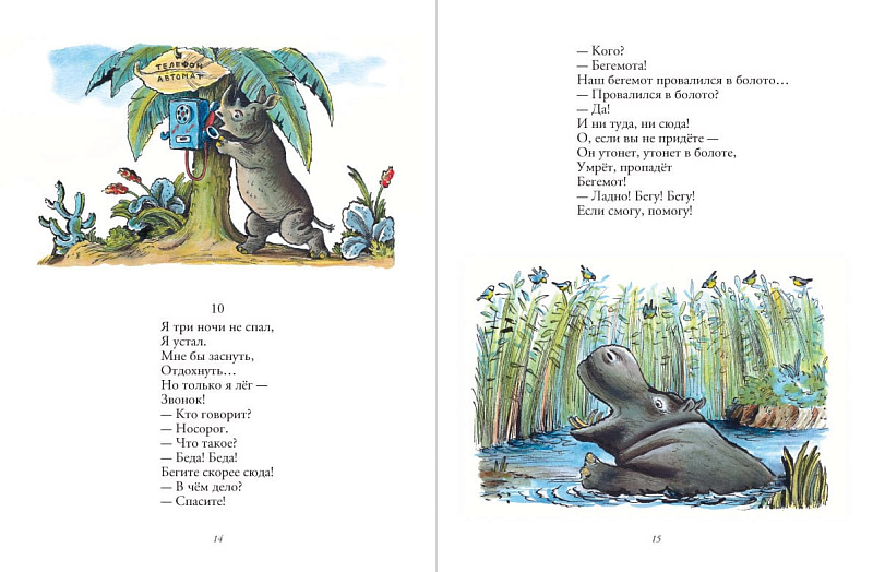 Чуковский написал «Телефон» очень давно – в 1926 г. И говорилось в книге о том, как у доктора целый день разрывался телефон. Звери звонили ему по пустякам, и бедный доктор не знал ни сна ни отдыха…<br> <br> В наши дни стихотворный шедевр дедушки Корнея отнюдь не устарел. Наоборот, сказка дала нам массу крылатых выражений и просто известных четверостиший, которые мы с упоением повторяем не только вместе с детьми, но и в нашей взрослой жизни. Это и «Откуда? От верблюда!», «И такая дребедень целый день: …То тюлень позвонит, то олень», и «Ox, нелёгкая это работа – из болота тащить бегемота!» и многие другие.<br> <br> А уж иллюстрации Конашевича – выше всех похвал. Как говорил сам художник, «…весело, занятно, а главное – вещественно». В квартире крокодилов произрастает пальма в кадке, на стене фото: египетский пейзаж с пирамидами, и крокодилье семейство, плещущееся в теплых речных водах (просвещённый родитель подскажет ребенку, что крокодилы-то – нильские); у свиньи – роскошное старинное пианино с канделябрами; в квартире кенгуру висит трогательный портрет образцовой мамы-кенгуру с ребенком в кармане; Мойдодыр – фантастический симбиоз из кувшина для воды, рукомойника и водосточных труб – с газетой «Гигиена здоровья» в руках и потрясающей библиотекой за спиной. Одни названия чего стоят: многотомники «Баня». «Морские купания» «Водолечение», «Ванны. Души»…<br> <br> Легкая рифма, увлекательный сюжет, выразительные красочные рисунки позволяют считать «Телефон» Чуковского и Конашевича непревзойденным шедевром литературы «для маленьких».<br> <br> Рекомендуется родителям для чтения вслух детям младшего дошкольного возраста, а также для разглядывания и обсуждения картинок.<br>