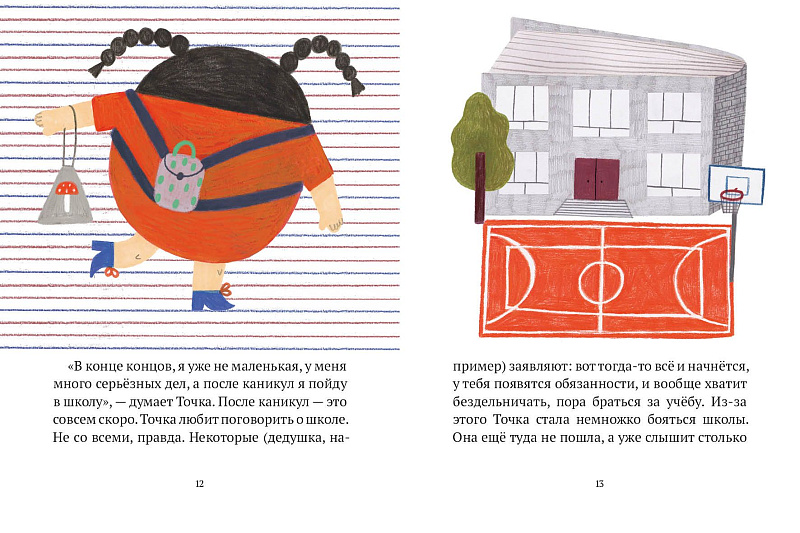 Точка живёт в тетради в линейку, и хочет, когда вырастет, стать точкой над «i». Ну а пока что она любит кувыркаться, висеть вниз головой на верхней линейке и играть с весёлой кудлатой Ошибкой, которая забрела когда-то на их страницу. Но вот однажды Ошибка исчезла. И чтобы отыскать любимую подружку, Точке пришлось отправиться в неведомое — за пределы родной тетради. Этот остроумный рассказ о силе дружбы —удачный писательский дебют польской переводчицы и редактора Анны Тараски. Полная иронии, словесных игр и заданий книга отлично подходит для тех, кто только начинает читать и очень остроумно рассказывает о правилах правописания и речи через истории о жизни знаков препинания.