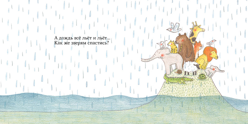 Кап-кап! Дождь идёт. Да ещё какой сильный!<br /> Кругом одна вода, звери еле-еле держатся на последнем клочке суши. Но их спас на своём большом корабле один добрый человек. Интересно, как же там звери разместились? И как они проводят время?<br /> <br /> Старинная история о Ное и его ковчеге, кажется, всем знакома. Но в книге Марианны Дюбюк, художницы с прекрасным чувством юмора и умением придумывать игры и задания для детей, она приобретает совсем новое звучание. Очень разным животным приходится провести много времени в закрытом пространстве друг с дружкой. Кто-то играет в чехарду, кто-то чистит зубы, кто-то обнимается… В общем, проводят время вместе, мирно и с пользой. Может, стоит позаимствовать у них несколько идей?<br />