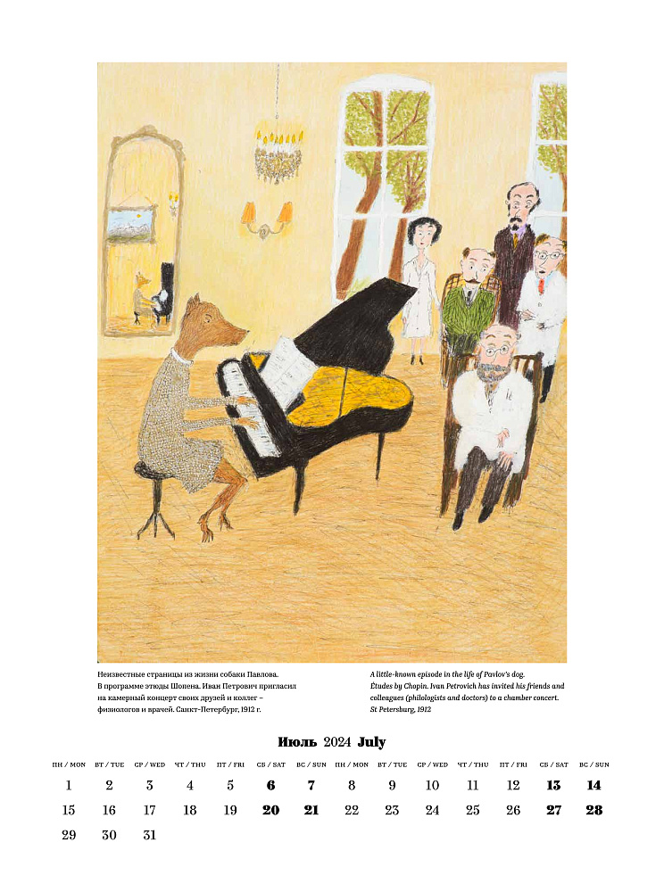 12 картин Александра Войцеховского и календарь на 2024 год — сочетание замечательное. Сюжетные полотна в стиле наив-арт и персонажи, вокруг каждого из которых витает целый рассказ, история. Позитивный и ярко-художественный календарь подойдет и для строгого офиса, и для детской. Тираж небольшой, количество календарей ограничено, не теряйтесь. Крупный формат настенного календаря, крепление — пружина. <p style="text-align: right;"> «Александр Войцеховский по основной профессии врач, а ныне известный петербуржский художник. Наивная живописная терапия «Петровича» показана всем без исключения – для укрепления сердечного иммунитета и повышения уровня эндорфинов в крови. Его картины чрезвычайно теплы, в них как будто поселилось вечное лето человеческой души – детство. Каждый рисунок – целая история, добрая, трогательная, словно любимое воспоминание или мечта.» peterburg.ru </p>