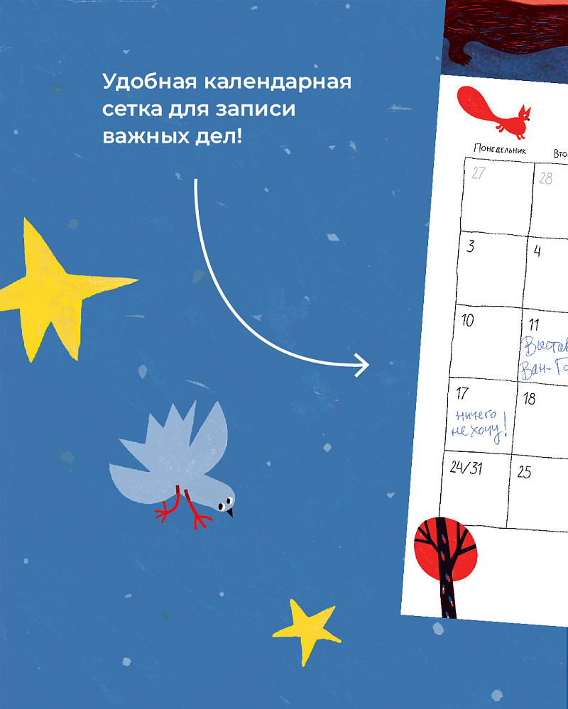 • Интересный и удобный формат, который напоминает книжки из Поэтической серии. Календарная сетка с удобными ячейками для записи важных дел на каждый день;